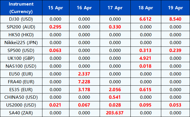 Please be advised that the dividends of the following index CFDs will be adjusted by upcoming ex-dividend dates. The comment for trading index CFDs will be in the following format “Div&<Product Name>&<Net Volume>” which show in the balance after the close of the day before the dividend payment date.
